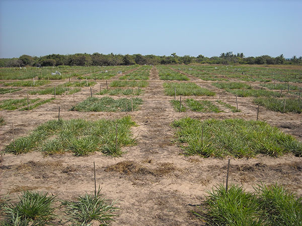 In Mexico, evaluations on the hybrid brachiaria collections commenced in 2005 at Santa Elena, Oaxaca (16°N, 4-8 m.a.s.l., 800-1200 mm annual rainfall, 6-8 months dry season) on very sandy soils, with low organic matter, low N, low P and a pH of 5.6. To date, studies have been conducted on BRO2, BRO5, BRO6 and BRO9 lines.